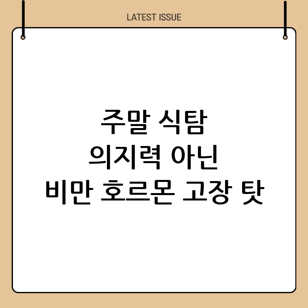 많은 분들이 평일에는 나름대로 식단을 조절하다가도 주말만 되면 걷잡을 수 없는 식욕에 시달리곤 합니다. "이번 주말은 망했어!", "나는 왜 이렇게 의지력이 약할까?"라며 자책하는 경우가 부지기수죠. 하지만 이러한 주말 식탐이 단순히 의지력 부족의 문제가 아니라, 우리 몸속 '비만 호르몬'의 불균형 때문일 수 있다는 사실을 알고 계신가요? 오늘은 왜 주말만 되면 식욕이 폭발하는지, 그리고 이 비만 호르몬의 정체와 균형을 되찾는 방법에 대해 자세히 알아보겠습니다.
