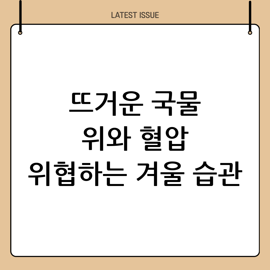 쌀쌀한 바람이 불어오는 계절, 많은 사람들이 뜨거운 국물 요리에서 위안을 찾습니다. 얼큰하고 뜨거운 국물을 한 모금 마시면 속이 뻥 뚫리는 듯한 ‘시원함’을 느끼곤 하죠. 하지만 이러한 순간적인 만족감이 당신의 위와 혈압에는 치명적인 독이 될 수 있다는 사실을 아시나요? 잘못된 겨울철 생활습관이 우리의 건강을 어떻게 위협하는지, 그리고 어떻게 하면 더 건강하게 겨울을 보낼 수 있는지 자세히 알아보겠습니다.